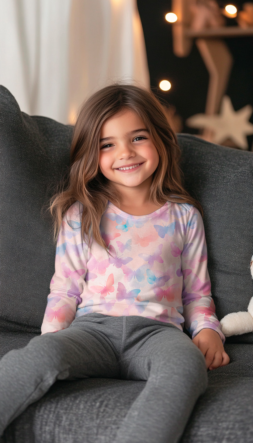 Auf dieserm zauberhaften Baumwolljersey tanzen tausend bunte Schmetterlinge.
