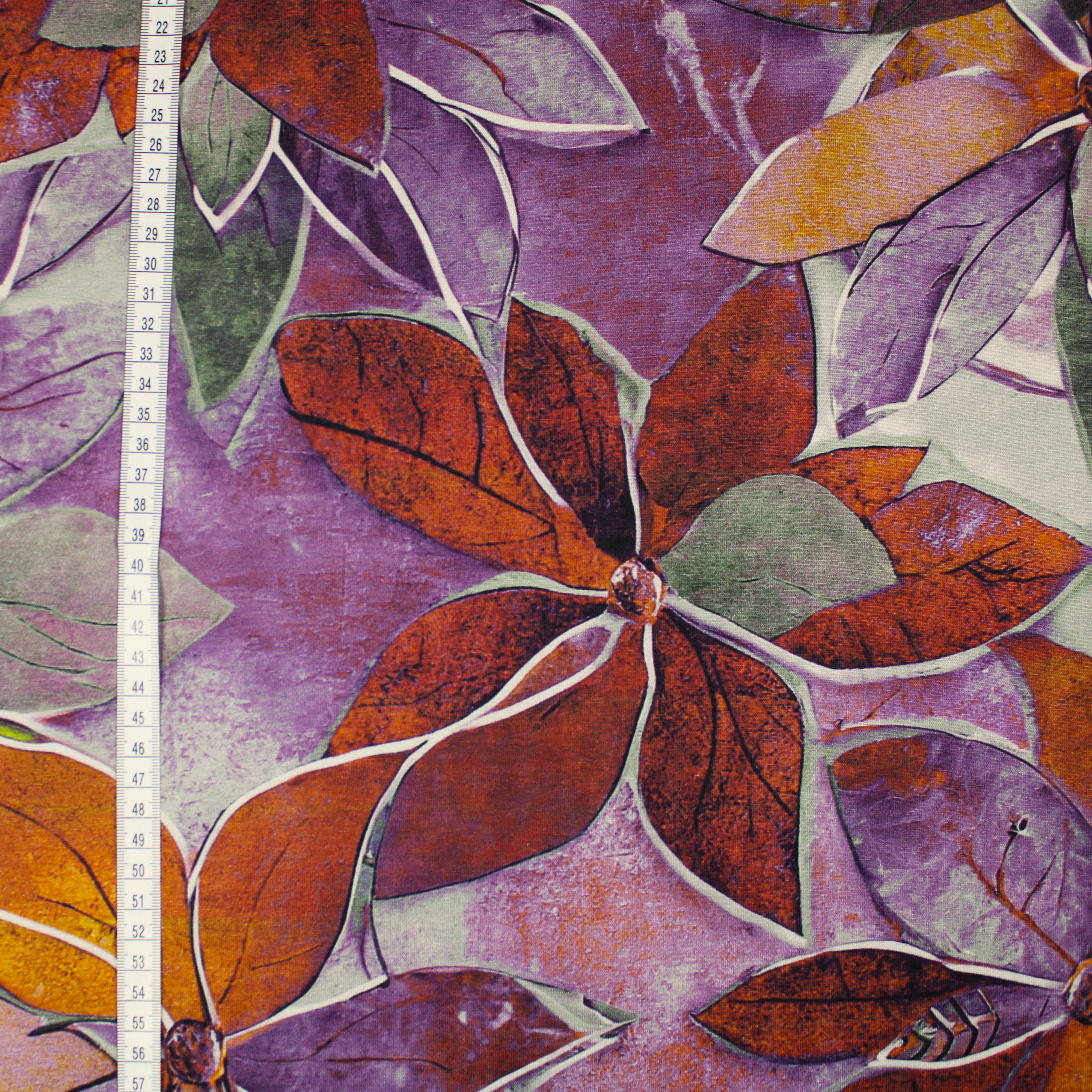 Baumwolljersey mit eleganten Blumen und Blättermotivin schönen fliederfarben.