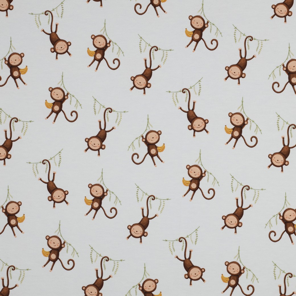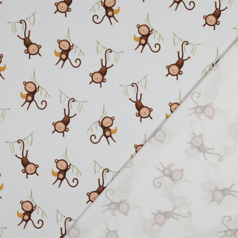 Baumwolljersey kleine Affen auf weiss Bioqualität, Digitaldruck