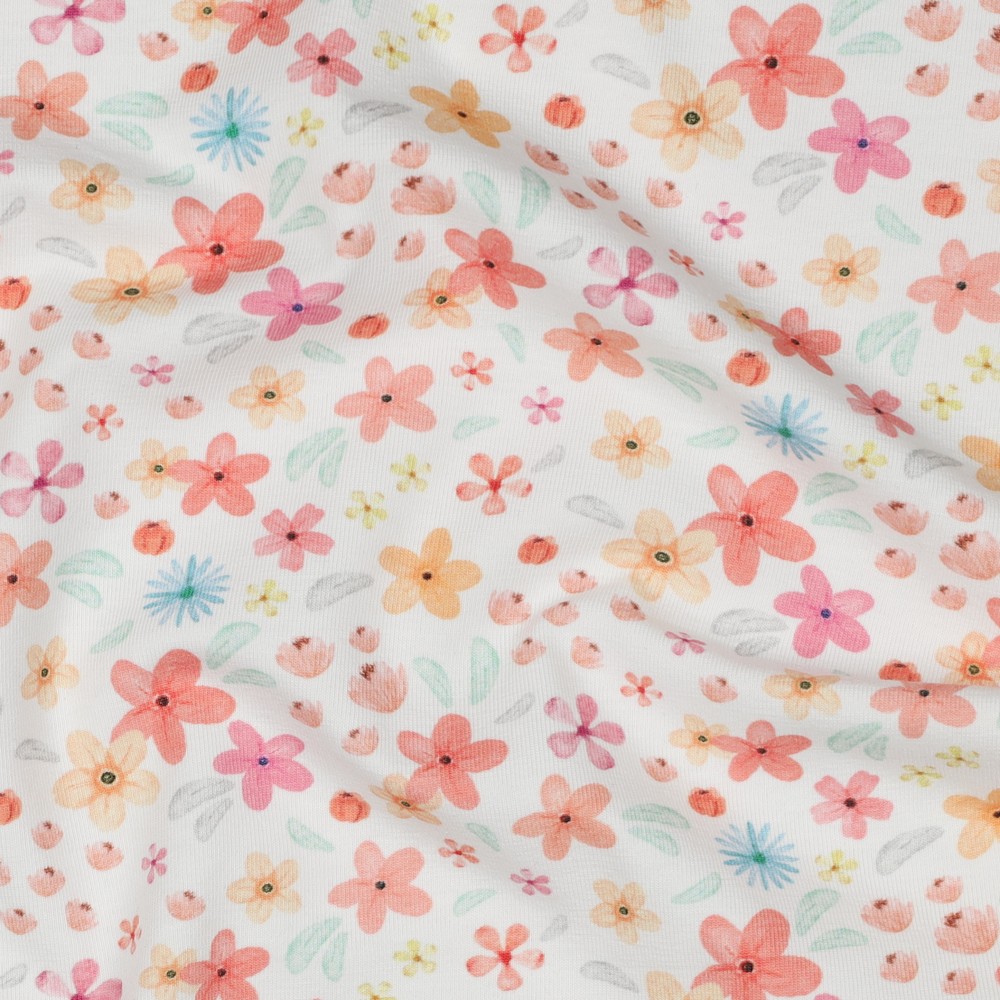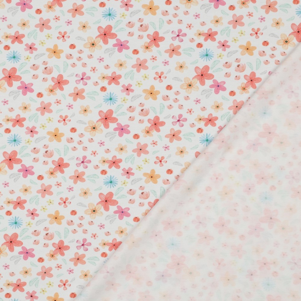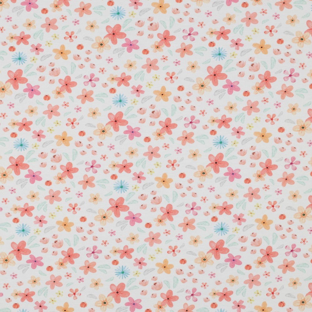 Baumwolljersey kleine Blümchen auf weiss Bioqualität, Digitaldruck