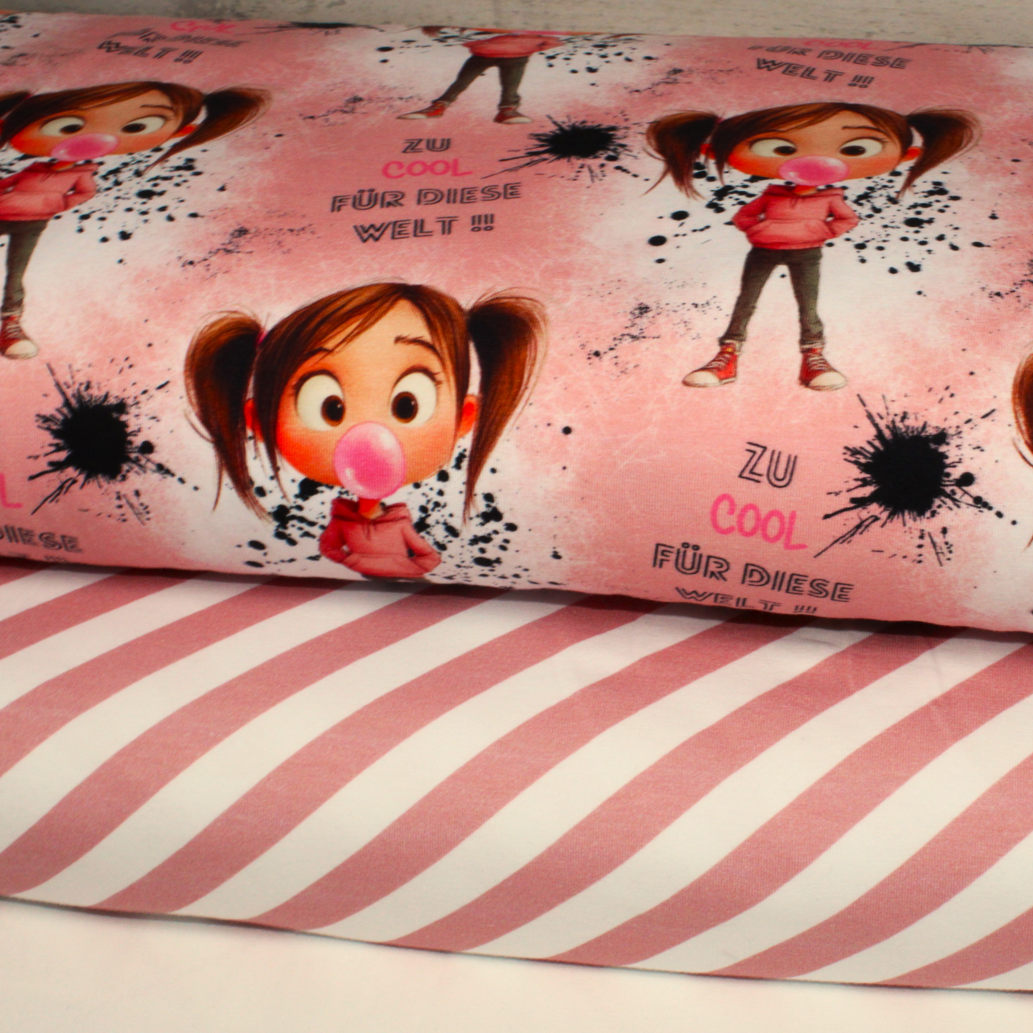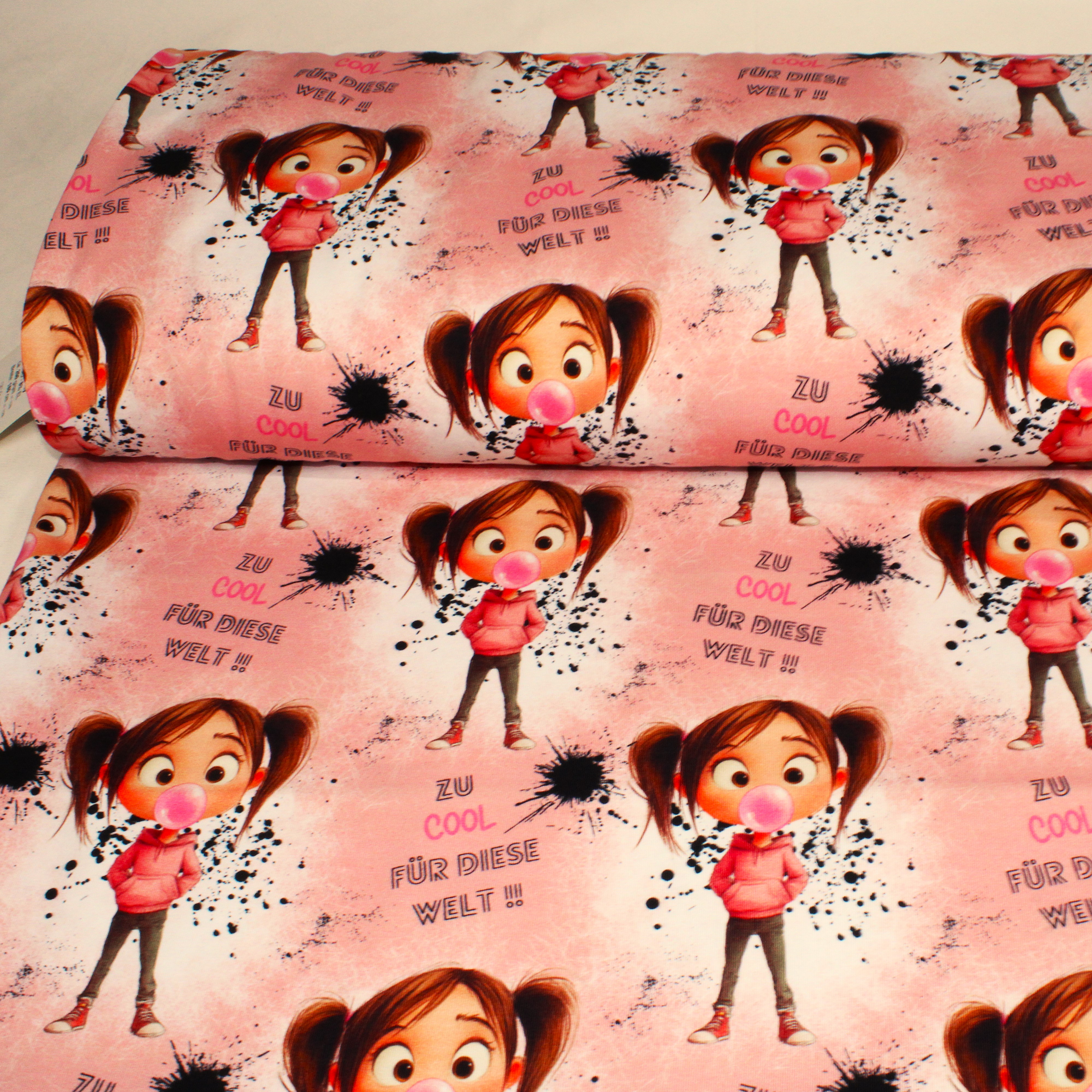 Cool Girl begeistert mit einem lässigen Design in zartem rosa und einer frechen Kaugummi-Blase.