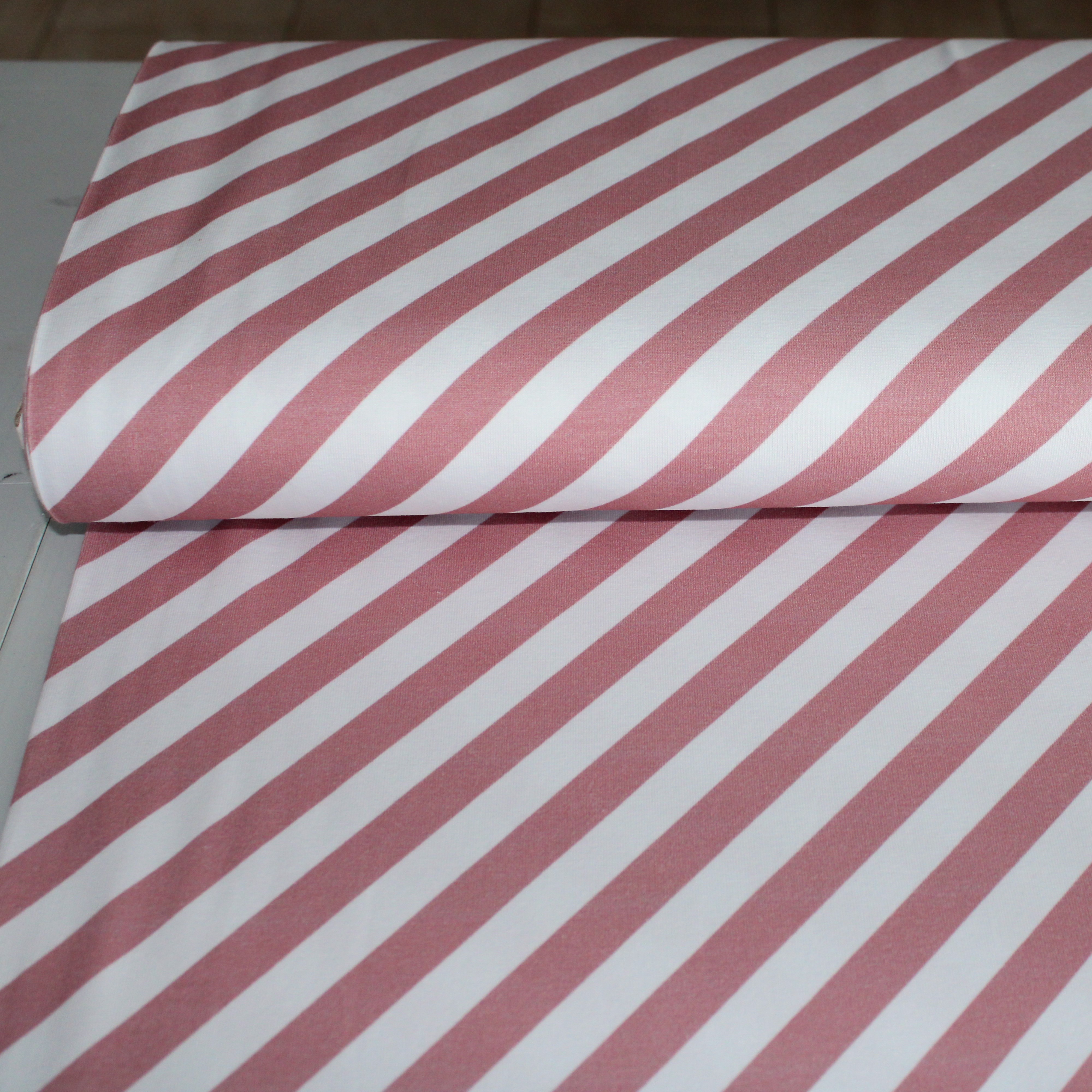 Eigenproduktion Baumwolljersey Softstreifen in rosa-weiss