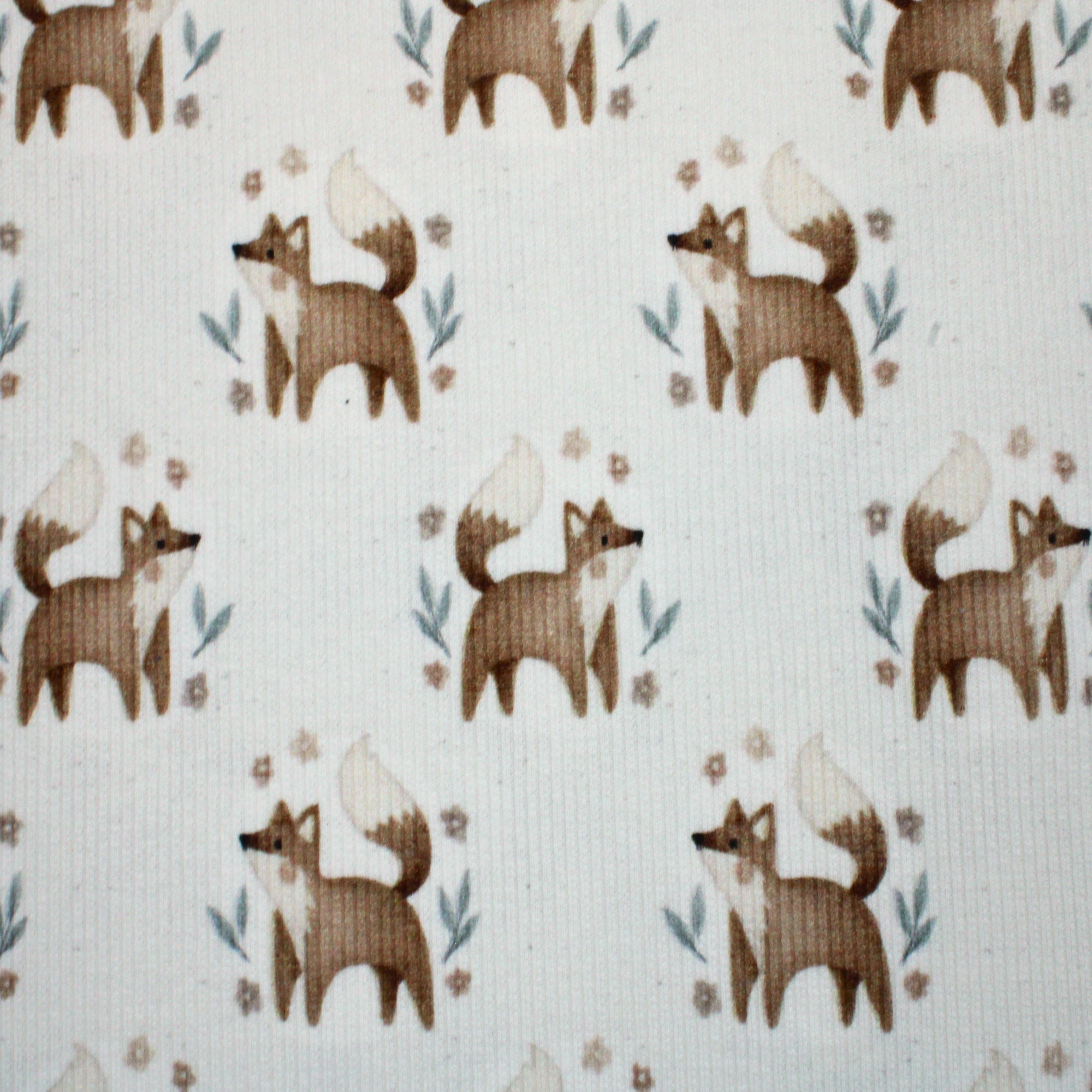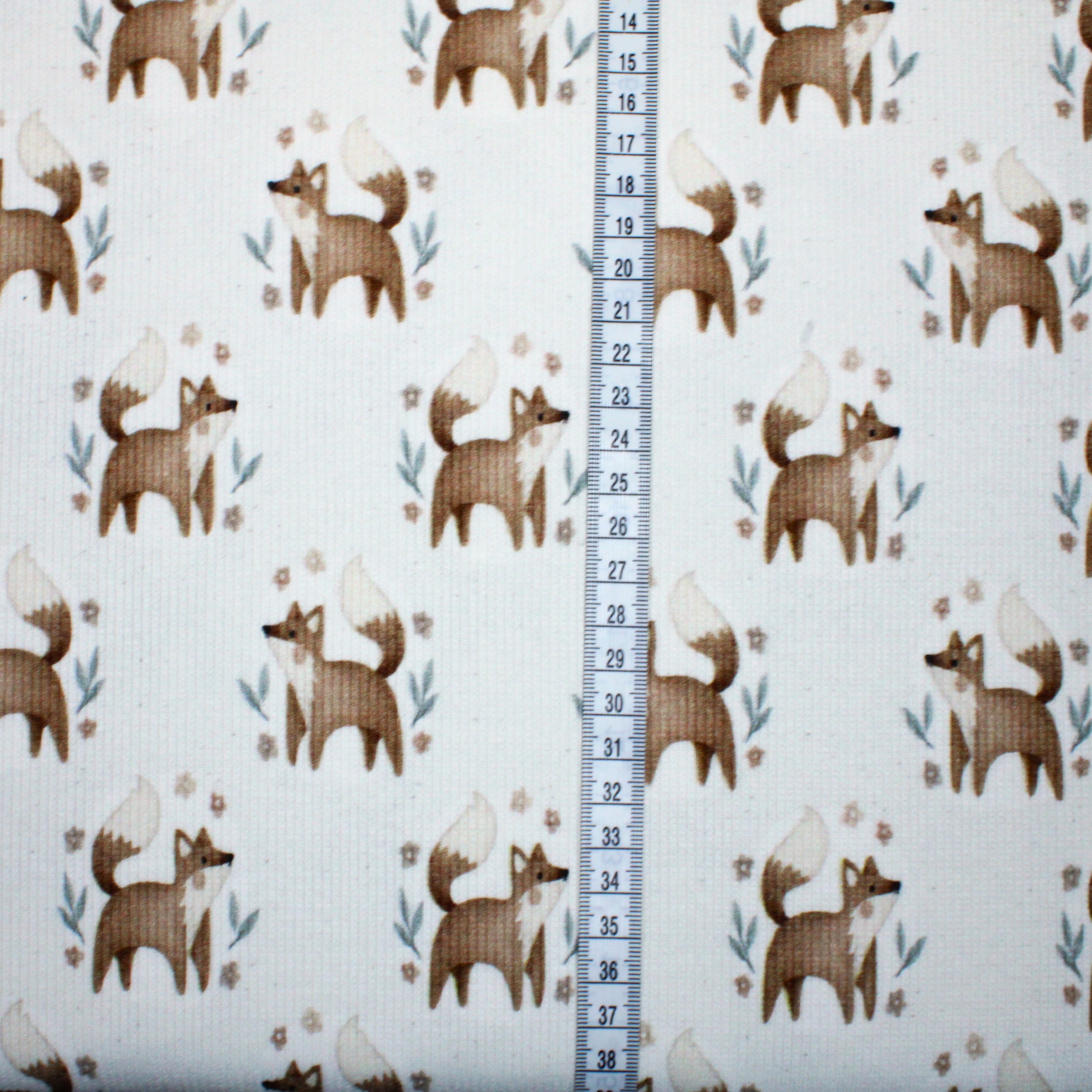 Wundervoll weicher RippJersey Fuchsfreunde in pastell-creme Die Rippen verlaufen längs, also parallel zur Webkannte wie bei einem Bündchen.