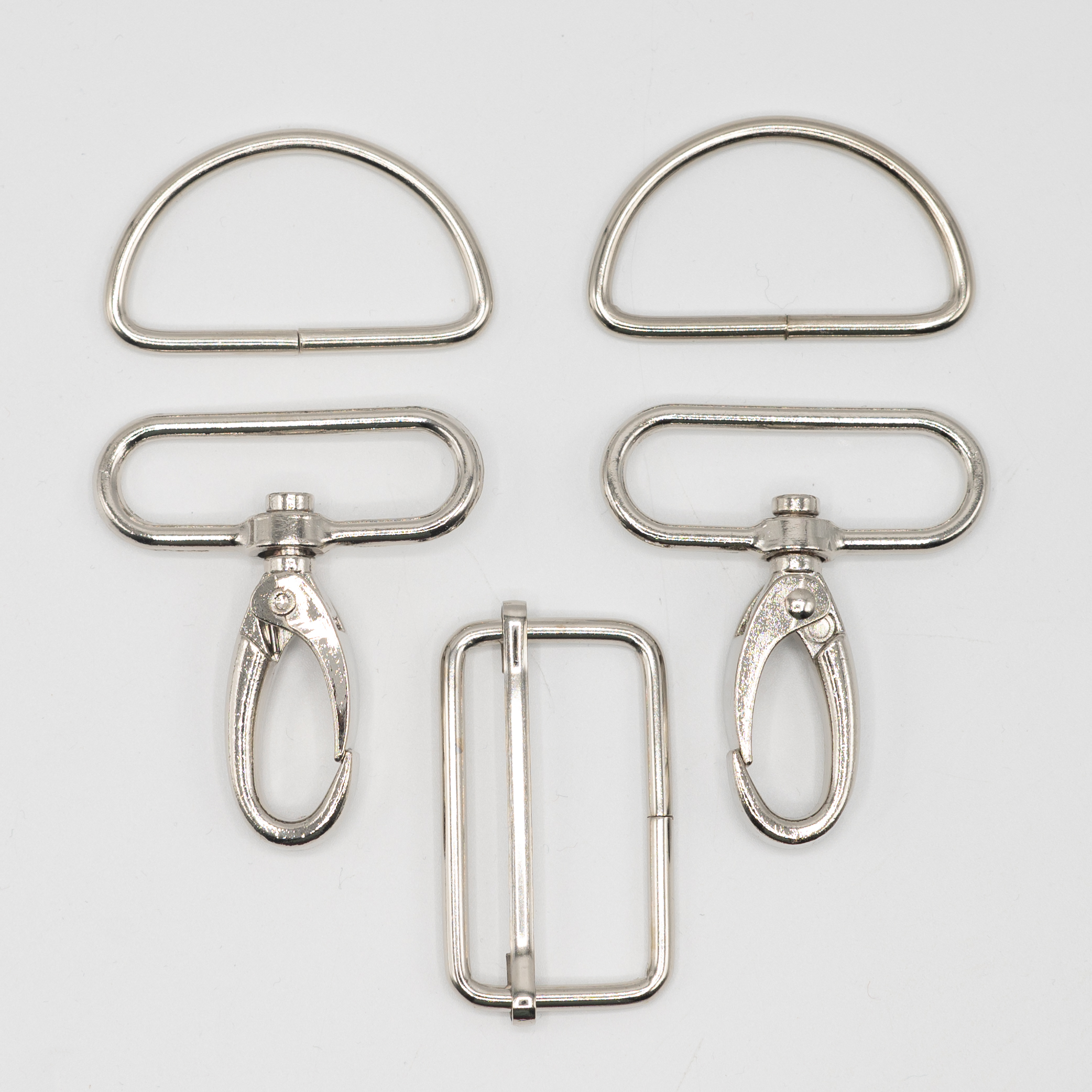 Taschen-Zubehör-Set | 40 mm | silber Das Set besteht aus 2 D-Ringen, 2 Karabinern und 1 Versteller/Schieber Passend für 40 mm breite Gurtbänder - Größe: 40 mm - Farbe: silber
