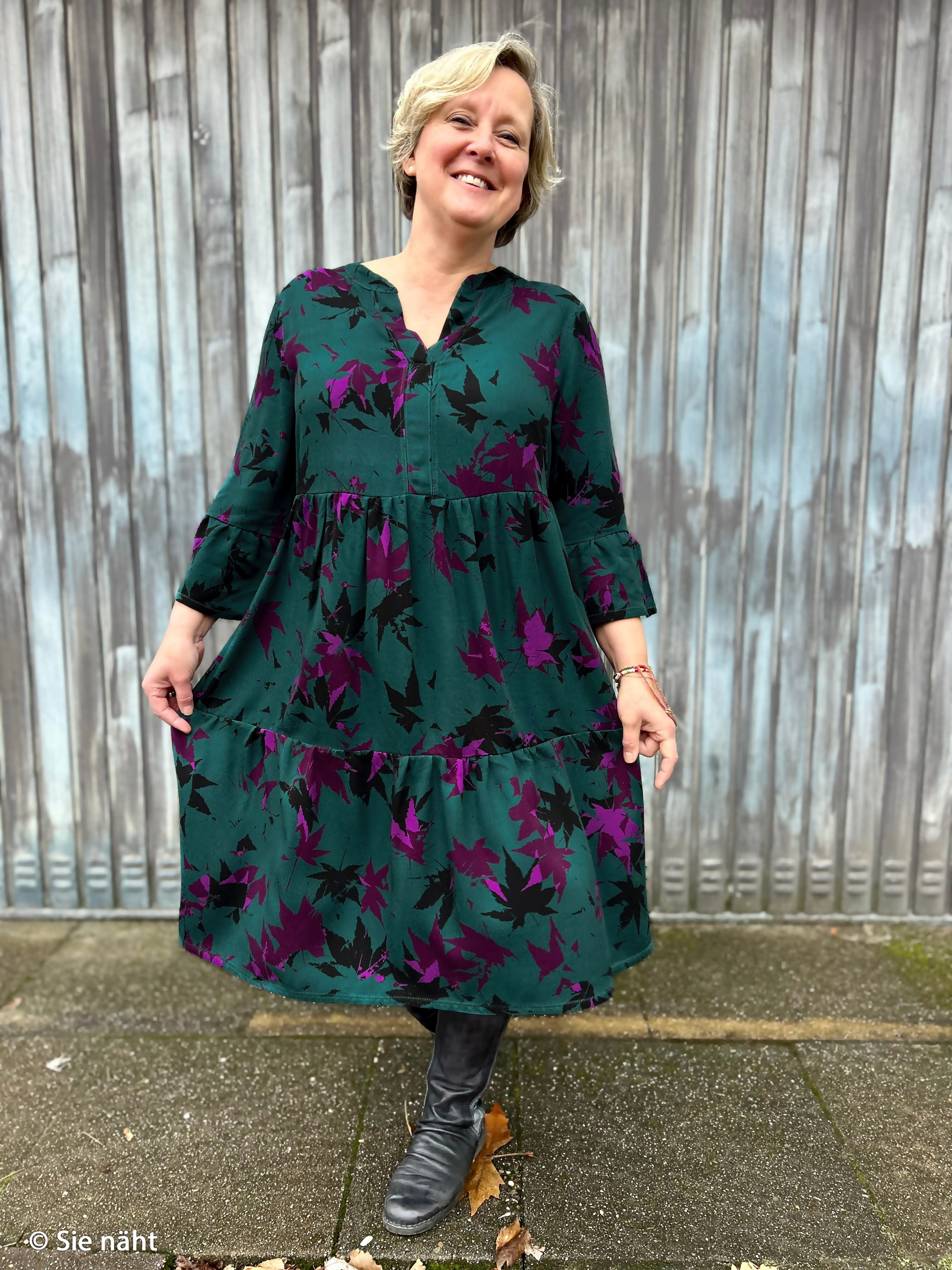 Mobile Preview: Viskose Webware Acer by Thorsten Berger, petrol -lila Blätter
